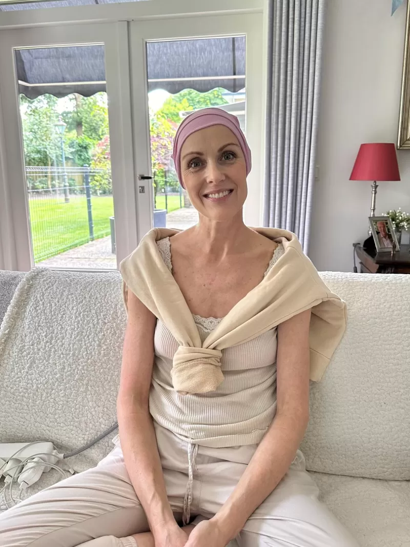 De chemo is heftig. Infecties, rillingen, uitslag, eindeloze dagen in een ziekenhuisbed. En toch is er ook dankbaarheid. “Je bent zó kwetsbaar. Mensen helpen je douchen, houden je hand vast. Dat vergeet je nooit. Het zorgpersoneel was fantastisch.” Tussen de kuren door mag Ingrid soms naar huis. Korte periodes, maar van onschatbare waarde.