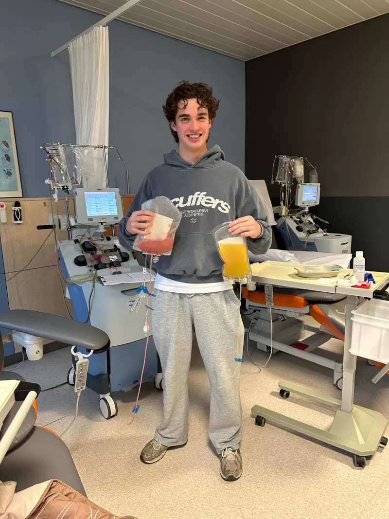 Hij is een match voor iemand anders. “Voor mij voelde het eigenlijk heel logisch,” zegt Olivier. “Ik had van dichtbij gezien wat mijn moeder had doorgemaakt. Als je dan zó concreet iemand kunt helpen, waarom zou je het niet doen?” Het bijzondere is dat Olivier zijn stamcellen heeft gedoneerd aan iemand in de leeftijdscategorie 40-50 jaar, dezelfde leeftijd als zijn moeder. Het donatietraject verloopt soepel: medische keuring, groeifactoren spuiten, met goede begeleiding. “Het viel me alles mee. Ja, je voelt je een dag grieperig en je lijf is wat pijnlijk, maar dat weegt zó niet op tegen wat de ontvanger krijgt: een nieuwe kans op leven.”