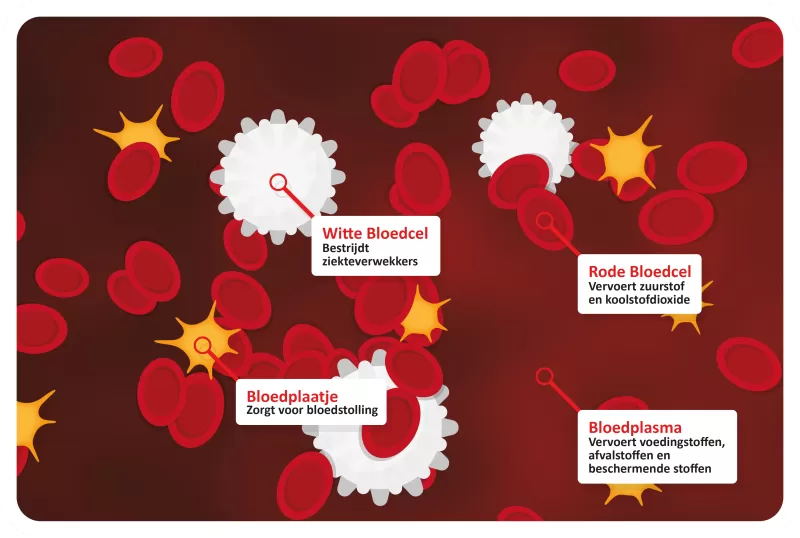 - Rode bloedcellen vervoeren zuurstof naar alle lichaamsdelen door middel van hemoglobine dat zuurstof bindt.